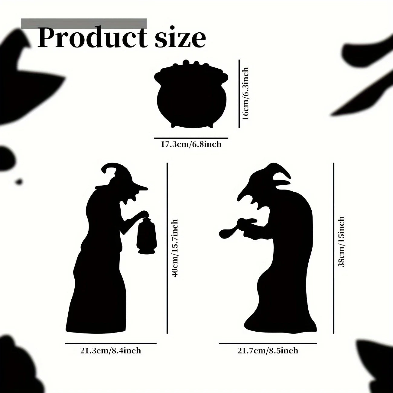Enhance your outdoor Halloween decor with this set of 3 large black witch silhouettes featuring cauldrons. Crafted from durable corrugated material, each yard sign includes a stake for easy installation in your garden or lawn. These striking decorations create a spooky atmosphere while withstanding outdoor conditions, making them ideal for lasting seasonal displays. Perfect for adding a classic Halloween touch that captures attention and sets the eerie mood.