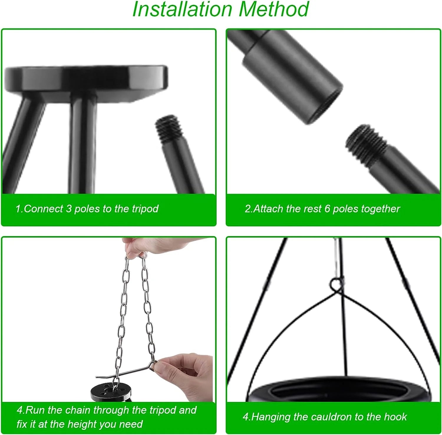This Halloween outdoor decoration features a 51-inch tall tripod holding a witches’ cauldron with green LED lights, perfect for creating a spooky atmosphere. Available in multiple sizes, the cauldron showcases a glossy black finish and operates on 2 "AA" batteries (not included). Designed for horror-themed events, it simulates a glowing, magical potion ideal for your yard or porch display. Customization options are available with a production time of approximately 15 days. Batteries are recommended for the XXL size; the set includes the cauldron and light string for an eye-catching, eerie effect.