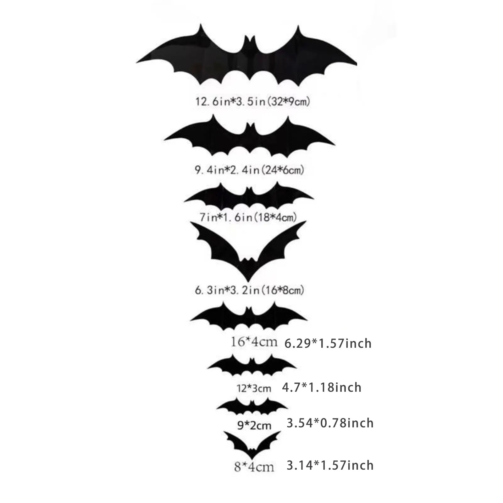 This Halloween decoration includes black spider stickers and 3D bats. The spider stickers are made of PVC material and come with removable adhesive on the back; A three dimensional with foldable that can adjust the angle, and also with adhesive attached to the back. The two patterns are clear, the edges are cut neatly, and there are no burrs.