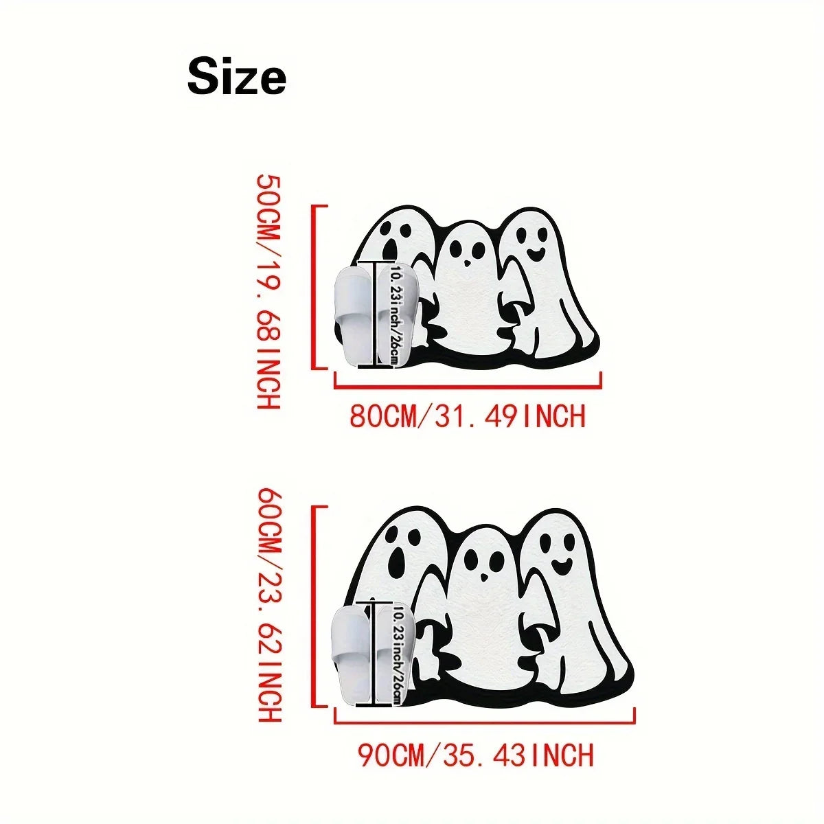 Enhance your bathroom décor this Halloween with this waterproof carpet featuring three adorable ghost designs. Designed for durability and easy maintenance, it offers a slip-resistant surface ideal for bathroom doors and bathtub areas. Its quick-drying material ensures hygiene and safety, making it a practical yet festive addition to your home during the spooky season.