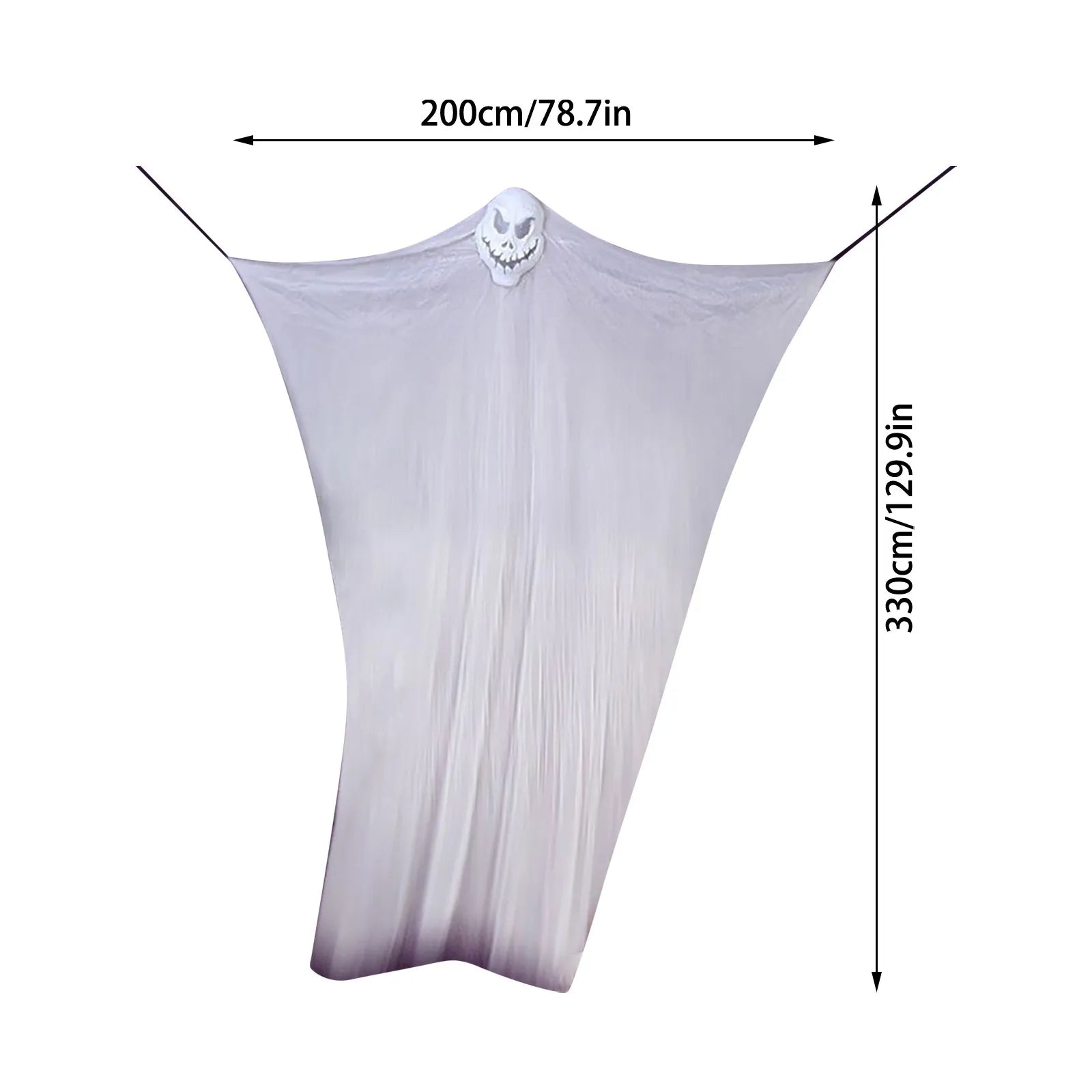 This Halloween hanging decoration features a large ghost mask crafted from PVC and cloth, measuring approximately 27 x 28 x 6 cm. Designed for wall display, it creates a chilling atmosphere perfect for festival settings. Please note slight variations in size and color may occur due to manual measurement and lighting differences. The package contains one single-piece hanging ornament.