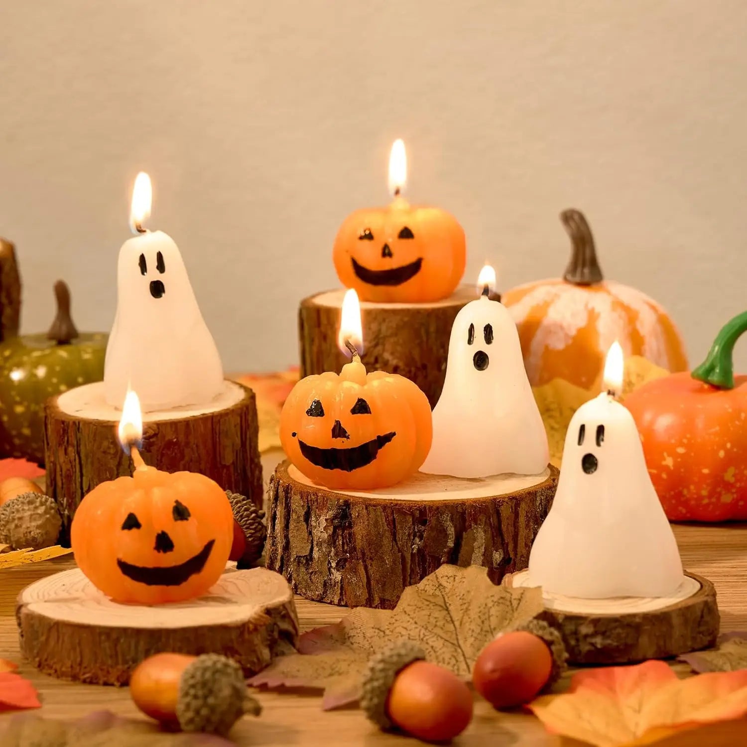 Handcrafted from paraffin wax, these scented Halloween pumpkin candles feature detailed 3D ghost shapes in eight distinct styles, perfect for adding festive charm to your home or indoor parties. Free from high-concern chemicals, they offer safe aromatherapy benefits while creating a warm holiday ambiance. Ideal as unique and thoughtful gifts, these candles bring a playful yet elegant touch to Halloween and Thanksgiving celebrations.