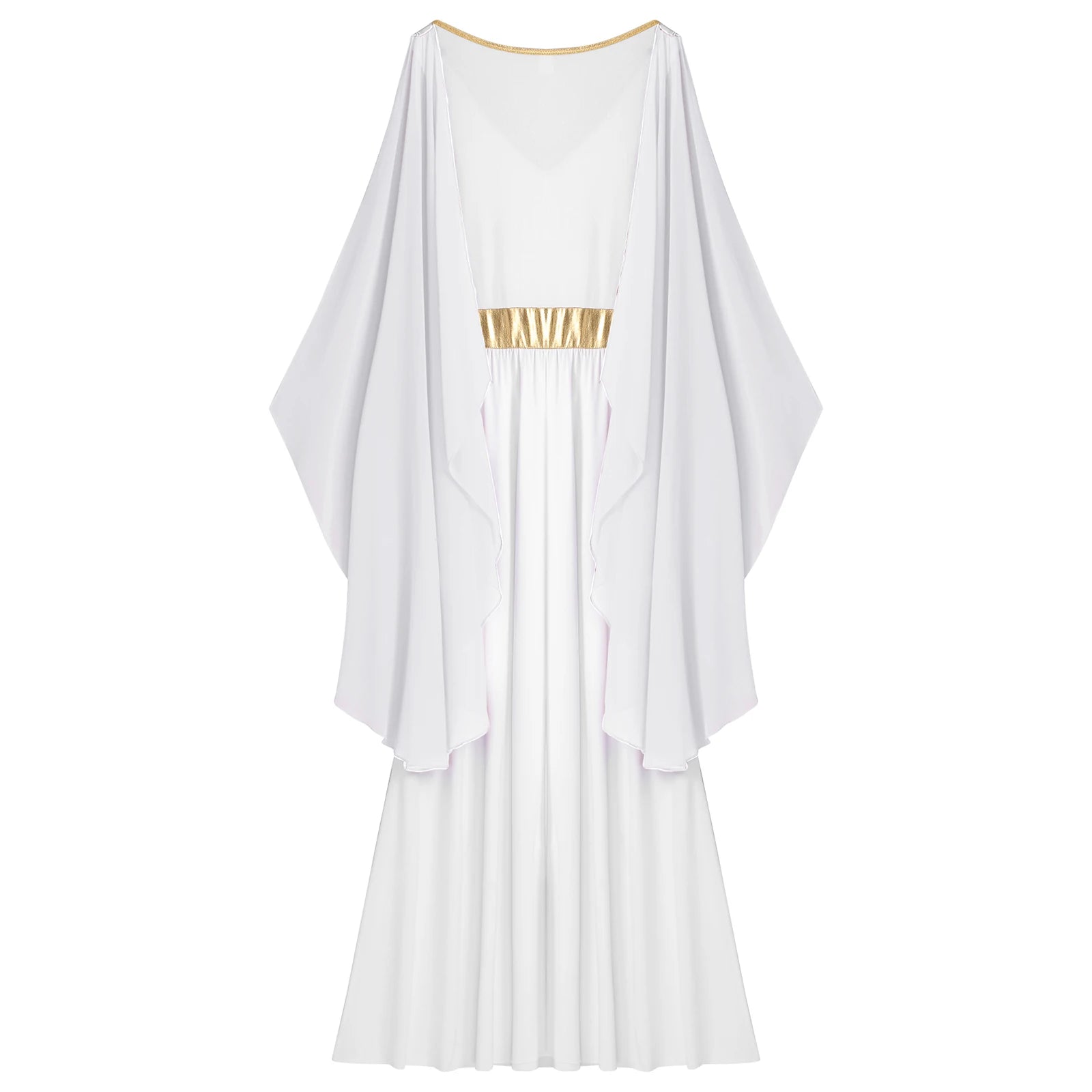 Features: Made of skin-friendly polyester, is breathable and no pilling, good elasticity, always keeps you feel comfortable and soft. Designed with v neck, sleeveless with chiffon extension, gold trim and metallic shiny waistline, maxi length and vintage toga style. Flowy chiffon with good draping looks dreamy with much charm. Gold trims and waistline brings a sense of luxury and delicate. Ancient toga dress dresses up you as Roman queen, Greek stunner, princess and nobility. Pairing with wreath, scepter and gold jewelry. Suitable for nightclub, stage performance, vintage themed shows, cosplay, masquerade, Halloween, carnivals, photo shoots, Christmas, etc.